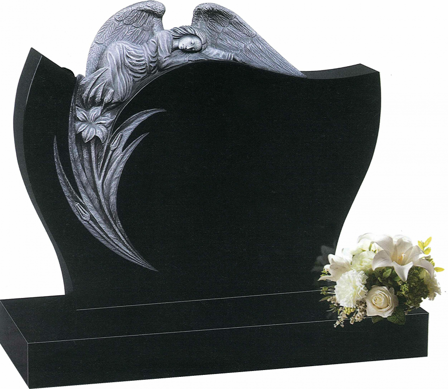 Example Image Shows: All polished black. Serene beauty is reflected in the elegant features of this Angel sculpture. The Angel is intertwined with a decorative floral design.