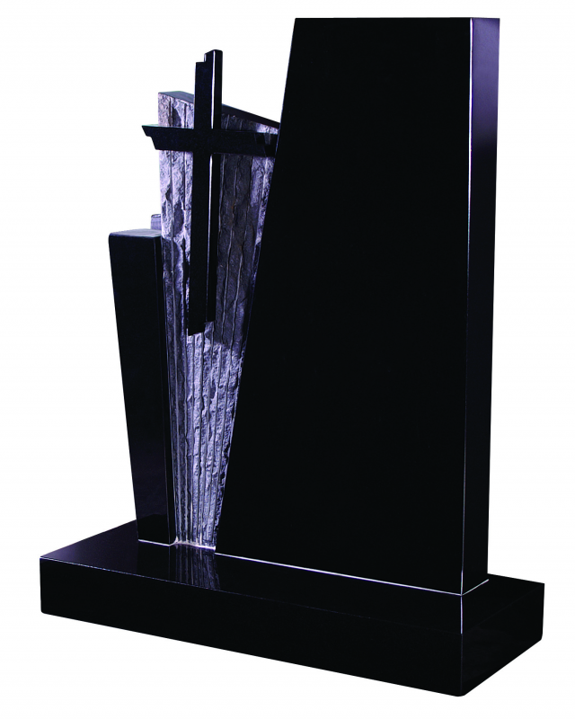All Polished Black. A modern memorial with a chiselled front incorporating a polished slender cross (Note the cross can be in different colours)
