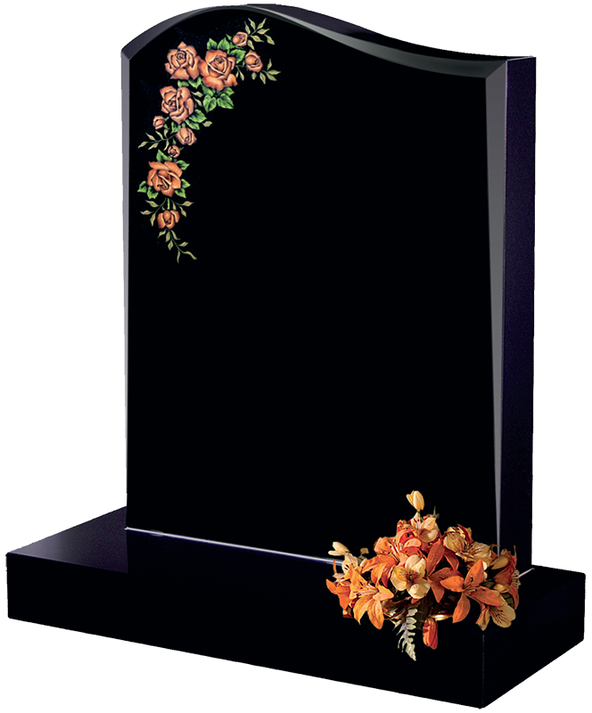 Example image shows: All Polished Black. A shaped top with straight sides and tempering chamfers make this a very elegant memorial.