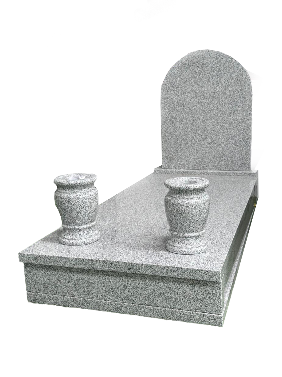 The Norman round kerbset memorial headstone with cover slab and vases in Karin Grey