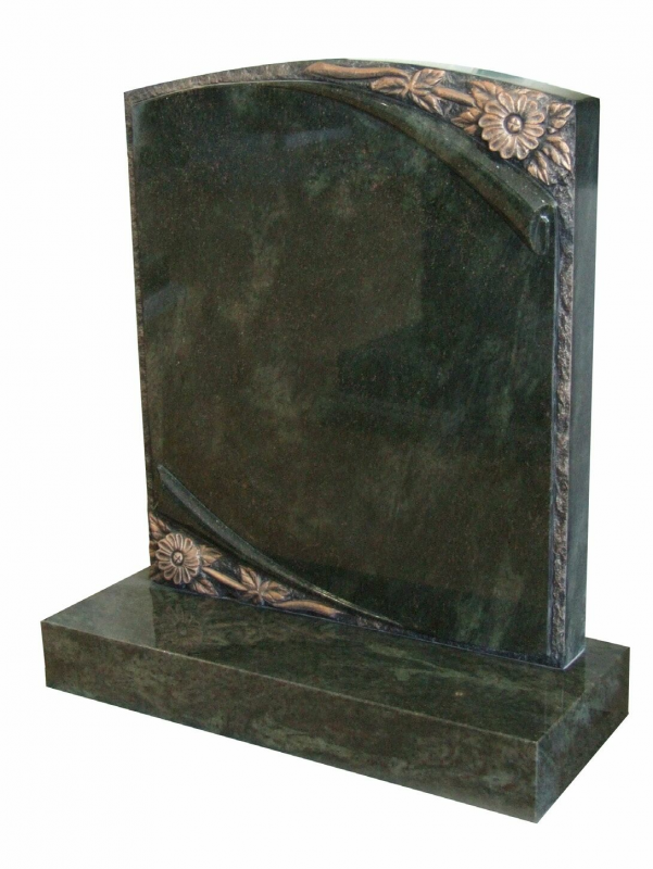 Example Image Shows: Polished Ocean Green This scroll memorial features a rustic background and hand carved wildflower in antique bronze finish.