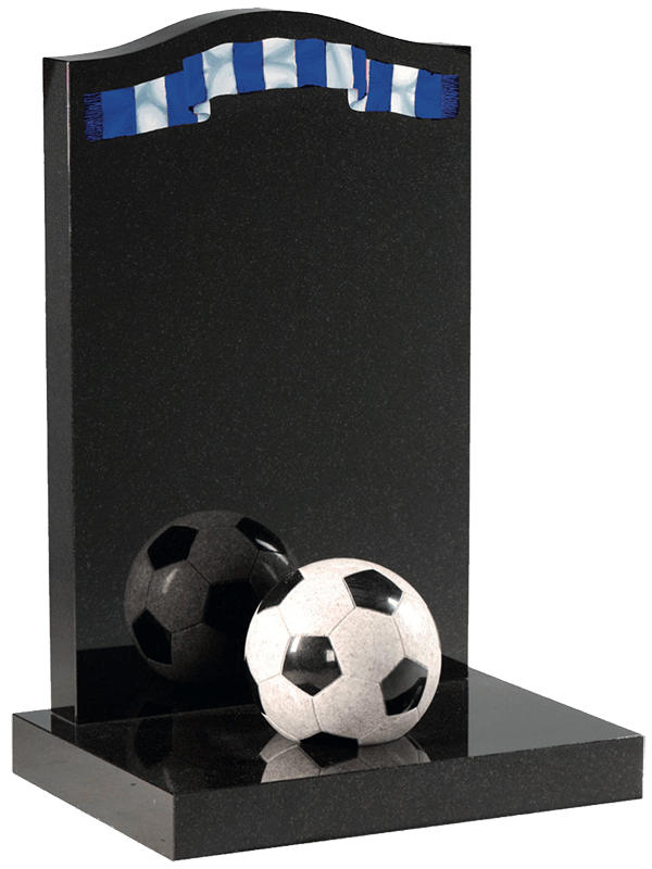 Example Image Shows: All Polished Black Memorial shown personalised with loved ones favourite team scarf and optional granite football.