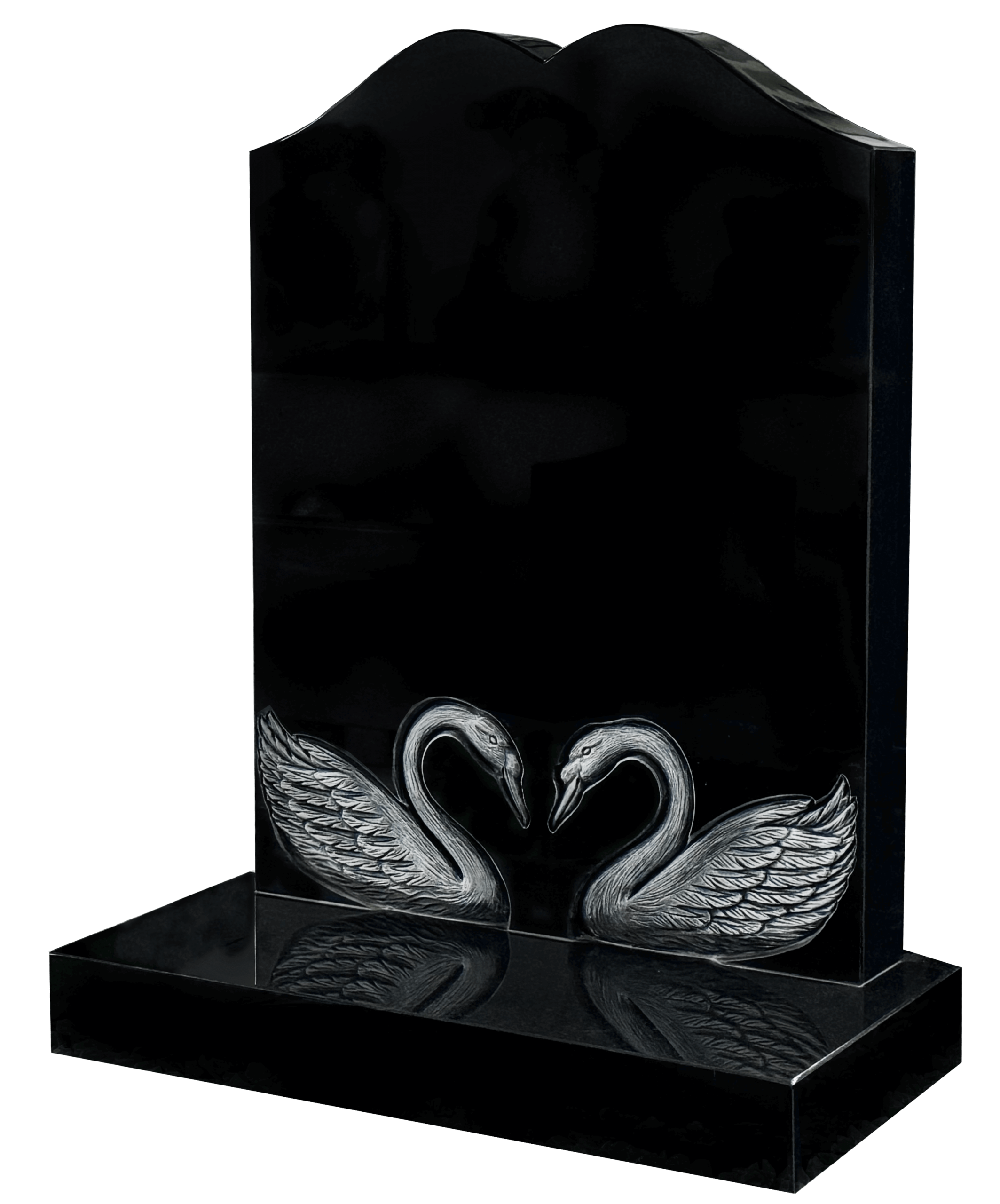All Polished Black with hand carved swans forming a heart