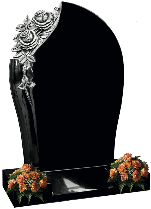 Example Image Shows: All Polished Black Gently sweeping lines and soft corners combine with highly detailed hand carved roses and centre splay base.
