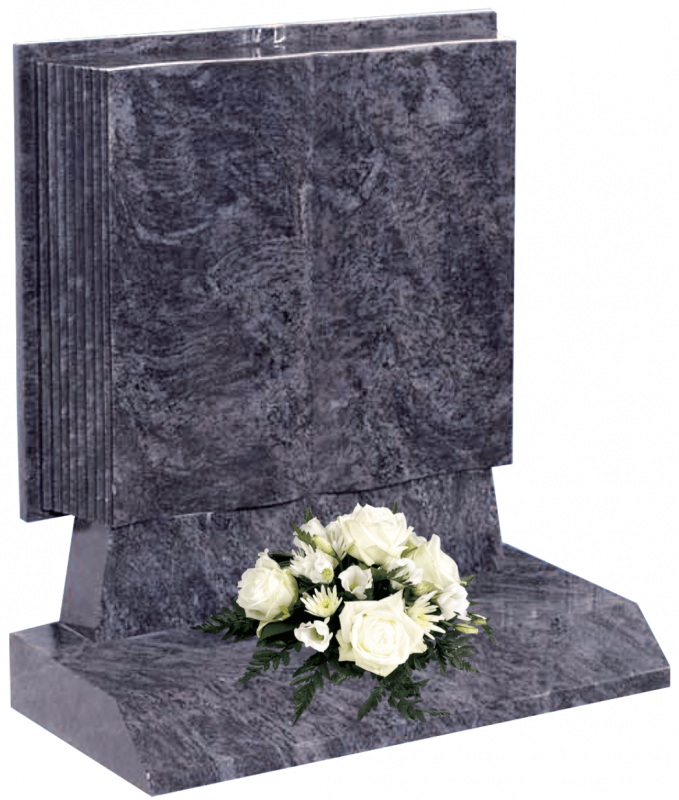Example image shows: All Polished Heather Blue. A book with a difference. 6″ thick to create the strength of the memorial, accompanied with a full splay base (Ensure the base size is allowed 1’3 B/F).