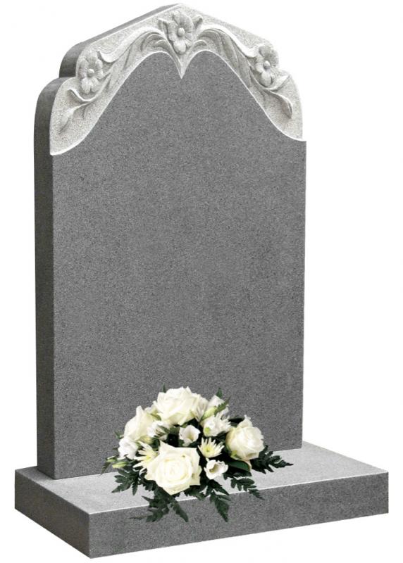 Example Image Shows: Karin Grey Honed Finish (Memorial shown with carving in natural and antique finish).